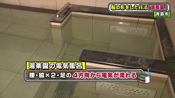 「腰と足先と両サイドの4方向から電気が流れる電気風呂は、なかなかないと思うよ」