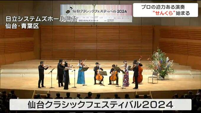 今年で18回目を迎えた仙台クラシックフェスティバル。青葉区の日立システムズホール仙台で開かれたコンサートでは、世界的バイオリニストの川久保賜紀さんや仙台フィルハーモニー管弦楽団のメンバーなど11人のプロの音楽家によるアンサンブルが披露されました。