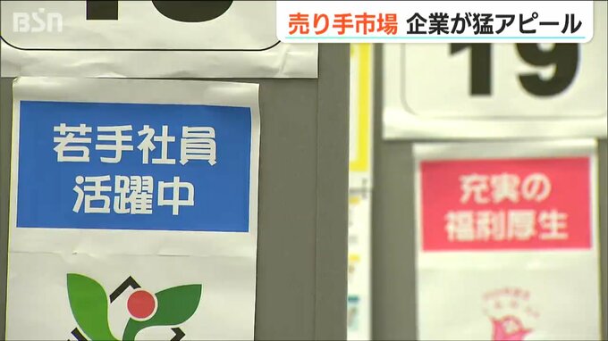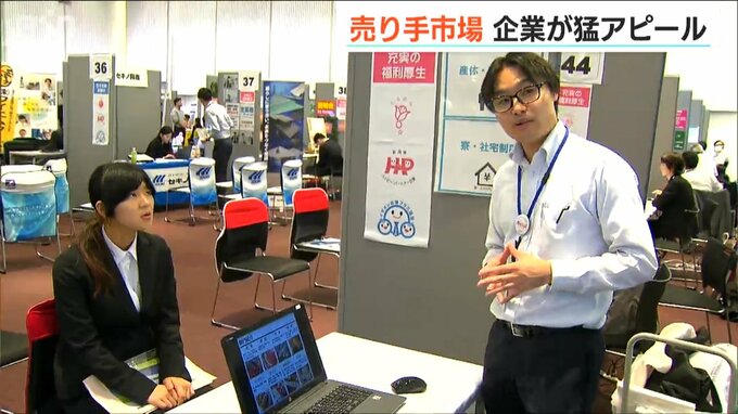 新潟県内企業76社がブースやオンラインで参加し、学生側が有利な売り手市場と言われる中で、仕事のやりがいや働き方の多様性などをアピールしました。