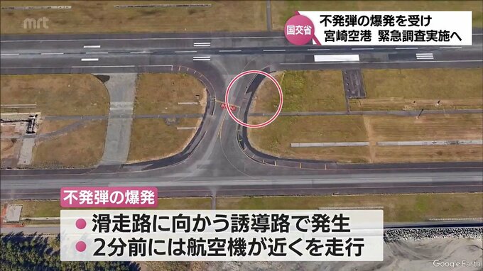 2日、宮崎空港で起きた不発弾の爆発を受けた対応です。国土交通省は、宮崎空港で不発弾が埋まっていないか、緊急調査を実施する方針を明らかにしました。2日、宮崎空港で発生した不発弾の爆発。滑走路に向かう誘導…