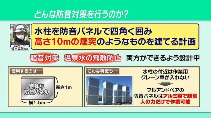 水柱を防音パネルで四角く囲み、高さ10mの煙突のようなものを建てる計画です。