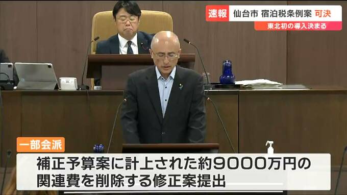 最終日を迎えた仙台市議会の9月議会。宿泊税条例案の最終的な採決を前に現状の導入に反対する一部会派が、補正予算に計上されたおよそ9000万円の関連費を削除する修正案を提出しました。
