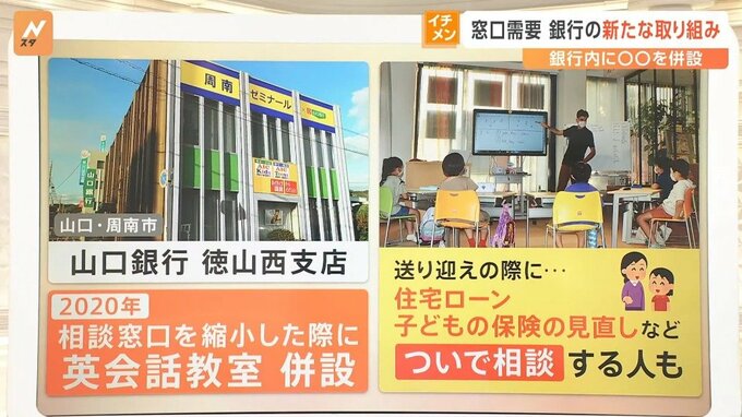 送り迎えの際、住宅ローンや子どもの保険の見直しなどを“ついで相談”する人もいるといいます。英会話教室はもともと取引先だったそうですが、銀行側からアプローチをして銀行内に入ってもらったということです。
