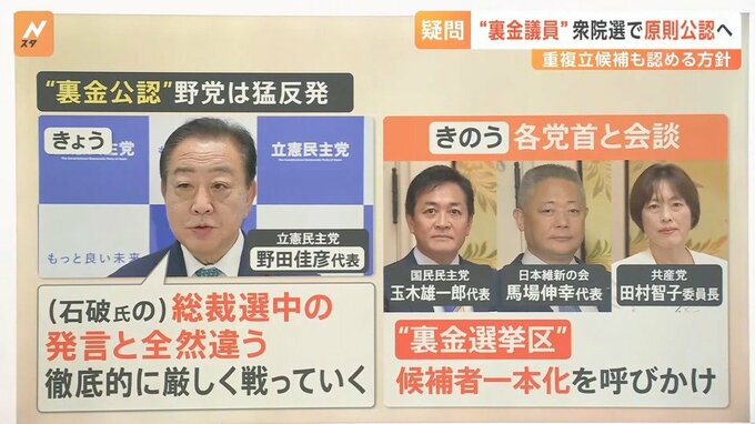 初めての所信表明演説に臨んだ石破総理ですが、複数の関係者によると、いわゆる“裏金議員”の対応については、一定の条件を満たせば原則公認する方向で調整していることがわかりました。