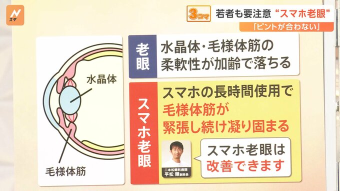 平松医師によると「スマホ老眼は改善できます」ということで、安心してください。