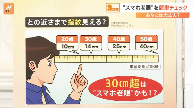 …それぞれの年齢で+30cmを超えている人は“スマホ老眼”かもしれないとのことです。