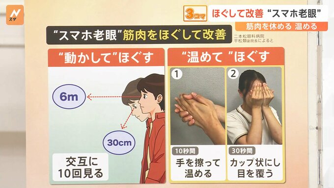 そして“スマホ老眼”には改善方法があります。目をリラックスさせることが重要だということです。