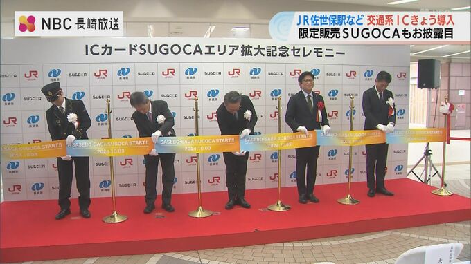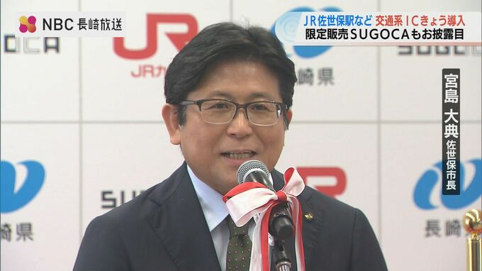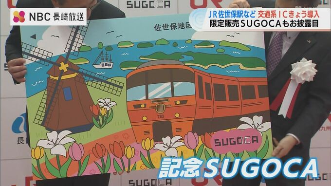 またハウステンボスや九十九島など、佐世保市を代表する観光地などが描かれた記念デザインのSUGOCAもお披露目されました。来年2月から限定販売されます。