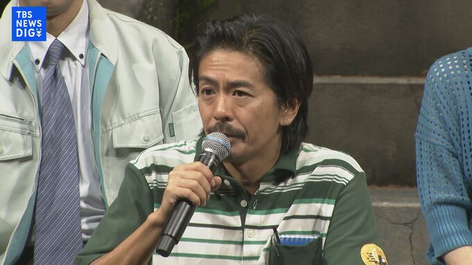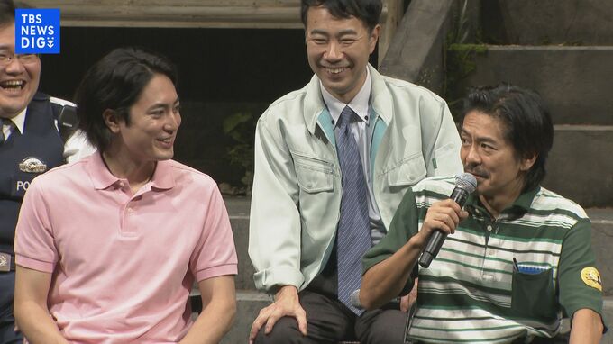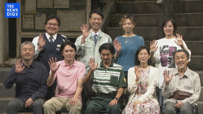 俳優の森田剛さん、間宮祥太朗さん、木村多江さん、藤井隆さん、井原六花さん、駒木根隆介さん、秋山菜津子さん、佐藤B作さん、作・演出の赤堀雅秋さんらが、が5日、舞台「台風23号」のゲネプロを前に取材会を行いました。
