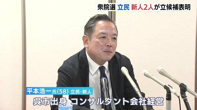 広島1区に立候補するのは、平本浩一氏です。呉市出身で世界銀行に勤めたあと、現在は長野県でコンサルタント会社を経営しています。