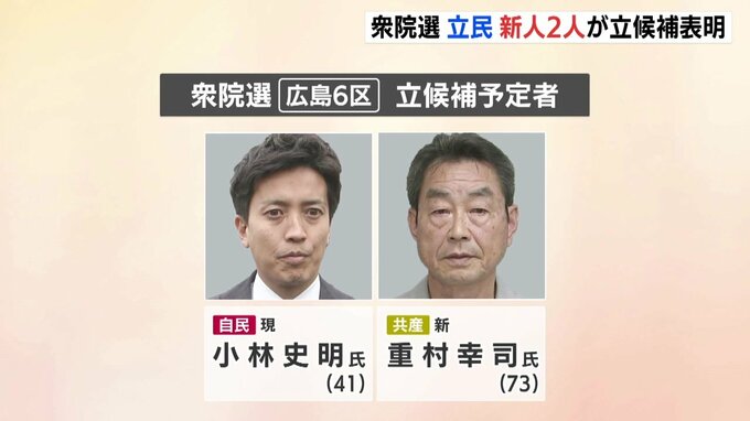 広島6区には、自民党現職の小林史明氏と共産党新人の重村幸司氏が立候補を予定しています。