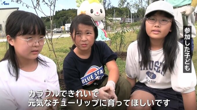 陸前高田市とデン・ヘルダー市が震災の発生を機に続けている交流の証しとして、広場の整備が実現しました。完成に合わせてオランダから贈られたチューリップの球根1万個のうち6000個が、参加者の手で広場に植えられました。
