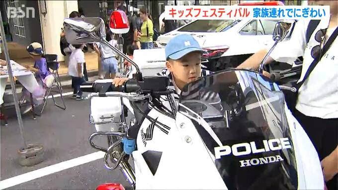 BSNキッズプロジェクトの一環で行われているキッズフェスティバル。オープニングには男性アナウンサーユニット『イケメン四銃士』とBSNのキャラクターハレッタが登場し会場を盛り上げました。このほか、警察の白バイや高所作業車を体験できるコーナーもあり家族連れでにぎわっています。
