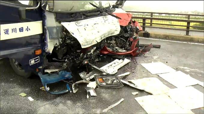 6日午前8時頃、利府町加瀬の県道塩釜吉岡線の橋の上で、トラックと乗用車が正面衝突しました。