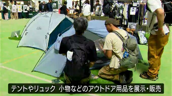会場にはテントやリュック、小物などのアウトドア用品が展示・販売され家族連れなどで賑わい、子どもたちにはハンモックが人気を集めていました。