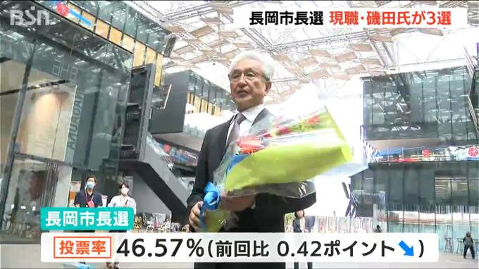 今回の長岡市長選の投票率は46.57%で、2020年の前回選と比べ0.42ポイント下回りました。