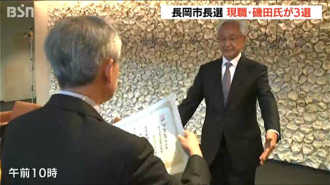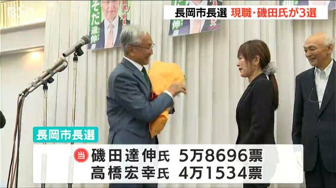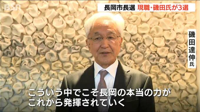 任期満了に伴う新潟県の長岡市長選挙で、現職の磯田達伸さんが3選を果たし「長岡の本当の力が発揮されていくまちにする」と決意を新たにしました。