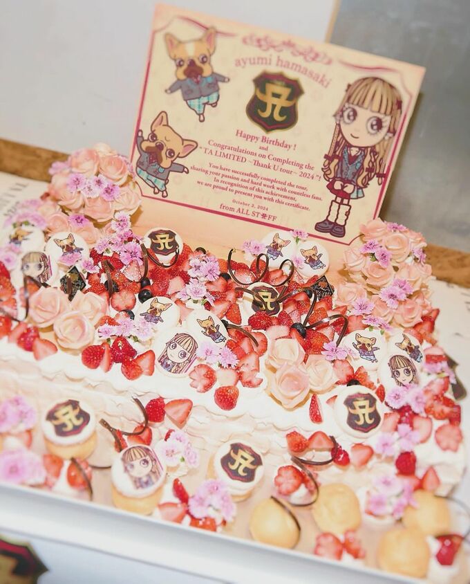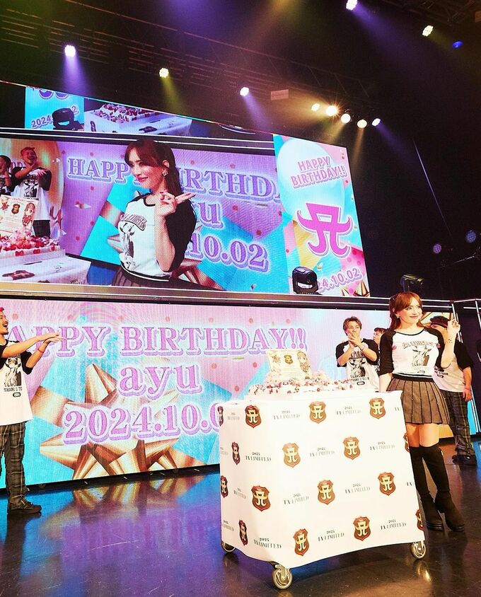 投稿されたのは「TA LIMITED ~Thank U tour~ 2024」(Zepp Namba)のライブでの写真で、浜崎さんがステージ上で誕生日をお祝いされる様子や、ステージ上で笑顔を見せる姿、豪華なバースデーケーキなどがアップされています。