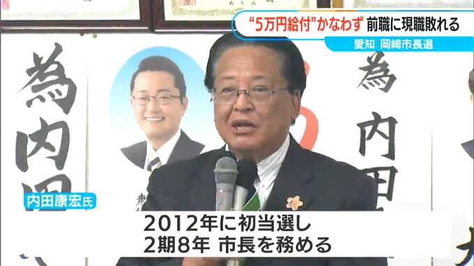 内田さんは2012年に初当選し、2期8年市長を務めました。前回の選挙では「全市民に5万円ずつ配る」ことを公約に掲げた中根康浩さんに敗れましたが、公約は議会の反対で実現しませんでした。