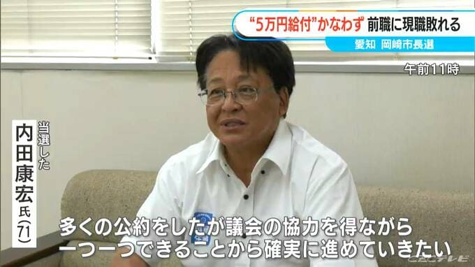 6日に投開票された愛知県岡崎市長選で、無所属で自民党と公明党推薦の内田康宏さん(71)が当選しました。