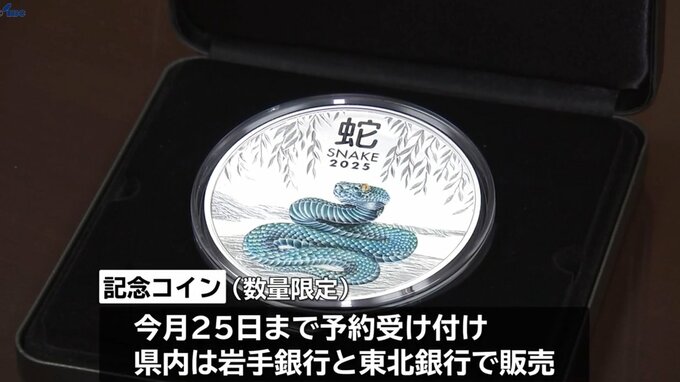 2025年の干支、ヘビにちなんだ記念コインが全国で販売されることになり、岩手県内の金融機関でも予約の受け付けが始まりました。