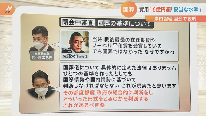 岸田総理は8日の閉会中審査で、現時点で約16.6億円と見込んでいる安倍元総理の国葬の費用について「妥当な水準」との見方を示しました。野党の厳しい追及に対し、岸田総理はどのような説明をしたのでしょうか?その…