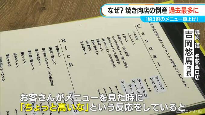 帝国データバンクは原材料費の高騰に加え、小規模な焼き肉店では客離れを警戒して大幅な値上げに踏み切れず、厳しい価格競争に耐えきれなくなっていると分析しています。