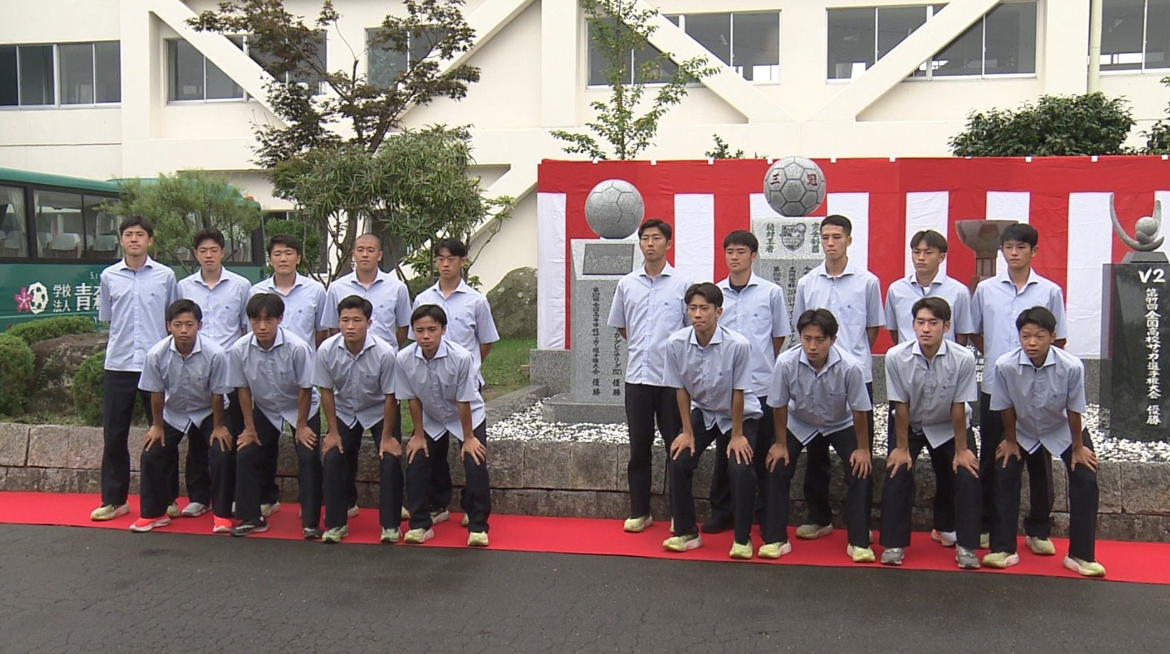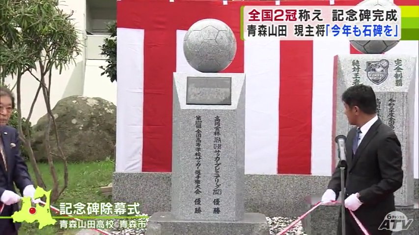 高校サッカーで昨年度全国2冠を達成した「青森山田」のイレブンの功績をたたえようと7日、高校の敷地内に記念碑が設置されました。