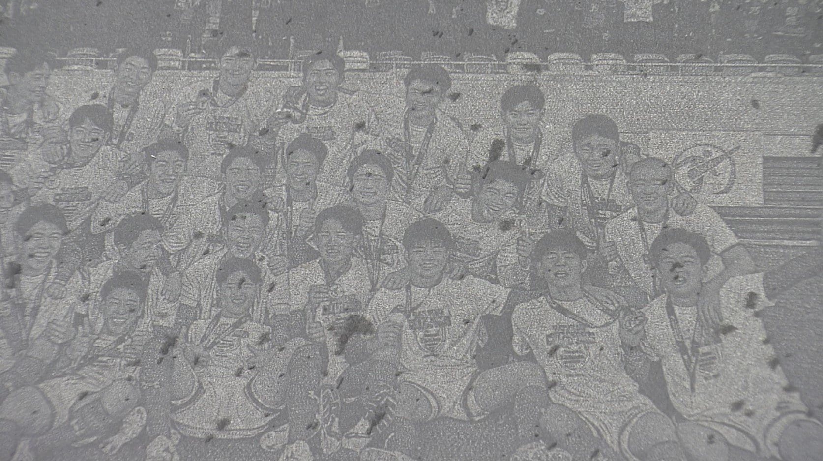 御影石でできた高さ183cmの記念碑の正面には、正木監督が選んだ昨年度の部員205人全員が映った写真を掘り込んでいます。