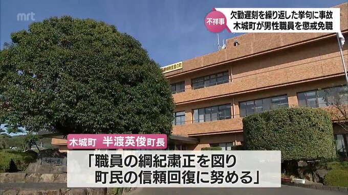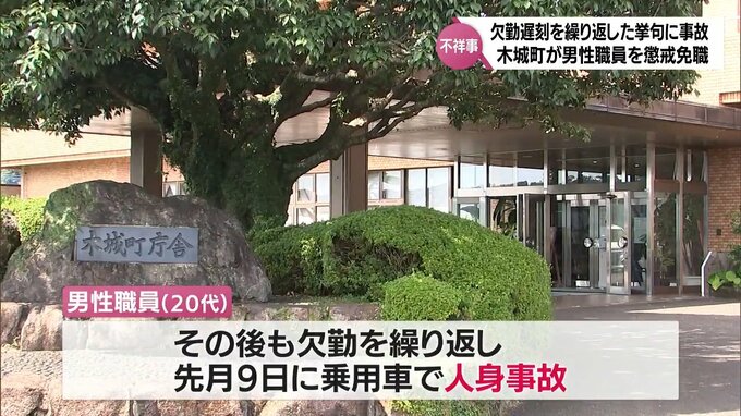 宮崎県木城町は、正当な理由がないのに欠勤や遅刻などを繰り返した上に、先月、乗用車を運転中に人身事故を起こした20代の男性職員を7日付けで懲戒免職処分にしました。