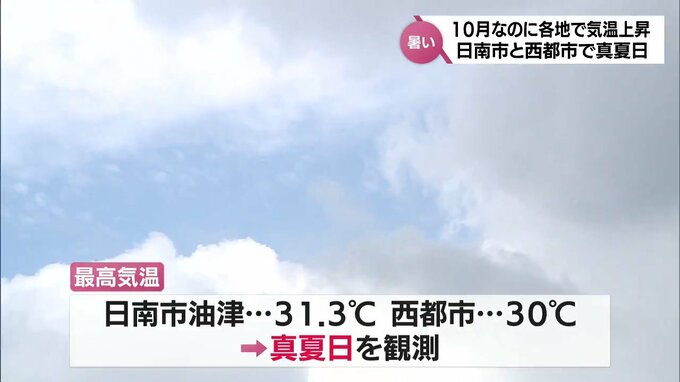 7日は、じめっとした暑さとなりました。宮崎県内では気温が上昇し、日南市や西都市で真夏日となりました。7日の県内は、前線の南側で、暖かい空気が流れ込み、朝から日差しもあり、気温が上昇。最高気温は日南市油…