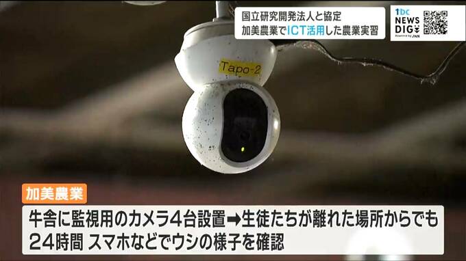 学校の牛舎には今年6月、監視用のカメラ4台が設置されていて、生徒たちが離れた場所からでも24時間、スマホなどでウシの様子を確認することが出来るようになりました。