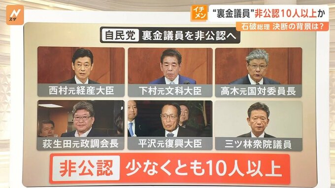 プラスアルファをどうするか、この2~3日、ずっと話し合いが続いていたところです。萩生田元政調会長など少し裏金の額が多い方には、今回は無所属になってもらおうと、最終的に石破総理の判断だと思います。