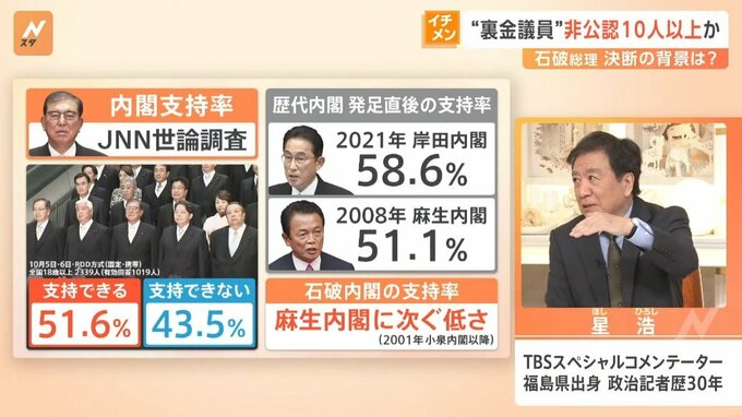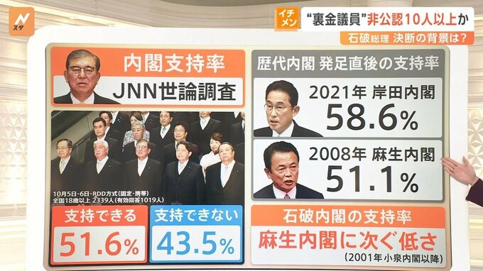 石破内閣の支持率が51.6%だったことが、最新のJNNの世論調査でわかりました。