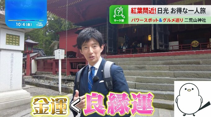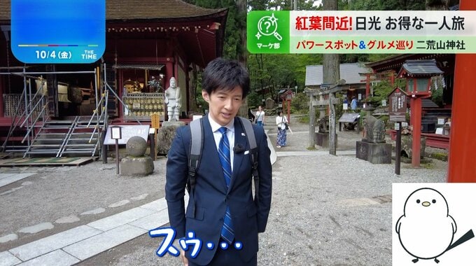 続いて向かったのは、日光東照宮から徒歩5分のところにある縁結びで有名な『日光二荒山神社』。パワースポットの「夫婦杉」に「恋人杉」、杉山アナはどんなお願いをしたのでしょうか…。