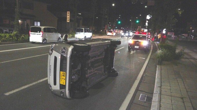 7日夜、甲府市の平和通りで乗用車と軽乗用車が衝突しました。この事故で軽乗用車が横転し、運転していた女性がけがをし病院に運ばれました。小林由奈記者:「甲府市伊勢1丁目の事故現場です。交通量の多い国道で、…