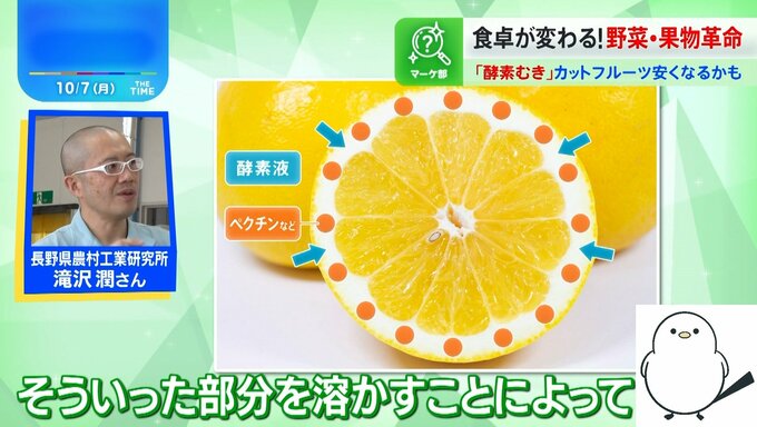 いち早く、カットフルーツにこの技術を取り入れた企業は「生産効率が上がると価格を抑えられる可能性も出てくる」(アイバイオプロダクツ・福村修一社長)と話していて、近い将来、カットフルーツが安くなるかもしれません。