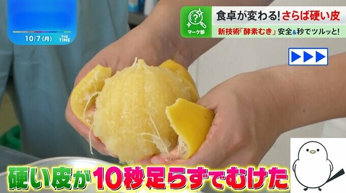 その酵素のパワーで、“果物の皮がいとも簡単にむける”とのことですが、手順はいたってシンプル。