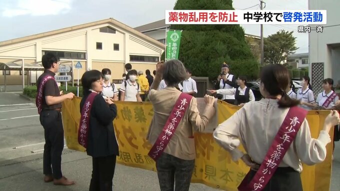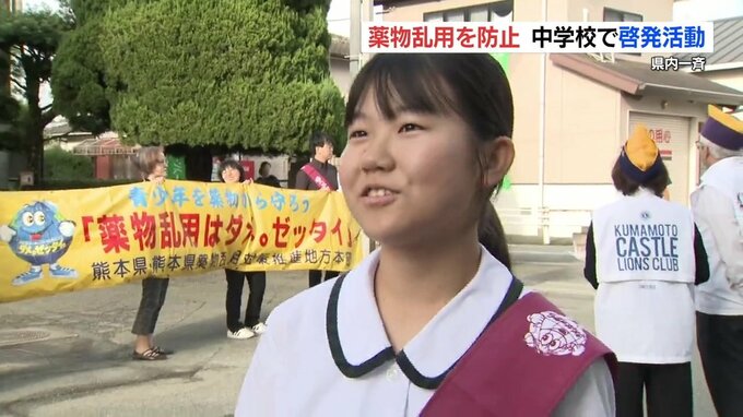 若者で増加傾向にある薬物の乱用を防止しようと、10月8日の朝、熊本県内すべての中学校で啓発活動が行われました。