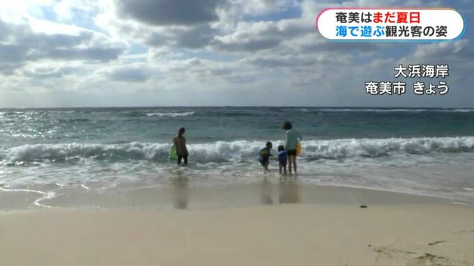 一方、こちらは奄美大島。夏のような日差しが照り付ける中、奄美市の大浜海岸では、海で遊ぶ観光客の姿も見られました。