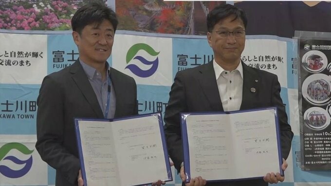 町民の健康づくりを推し進めようと山梨県富士川町と大手製薬会社が連携協定を結びました。協定を結んだのは、富士川町と大塚製薬で、7日に富士川町役場で行われた締結式でそれぞれが協定書にサインしました。この…