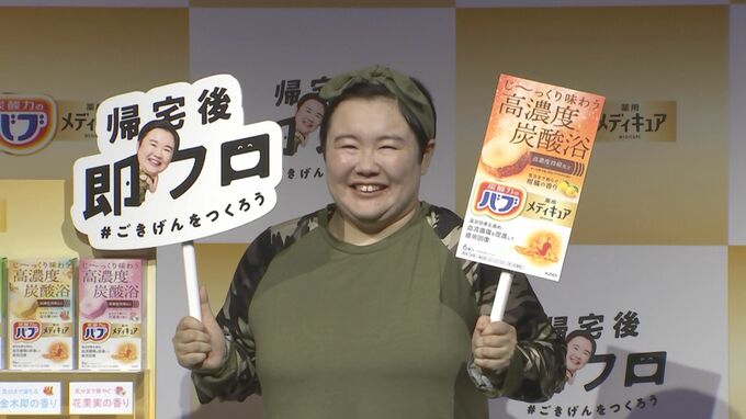 やす子さんはCM撮影について”カラフルで明るい現場で撮影中にお風呂入ることができたので、リラックスしながら撮影できた”と、振り返り”あと、前髪おろしている自分が映っているんですけど、前髪おろしている、やす子も可愛いですよね”と笑顔でアピールしました。