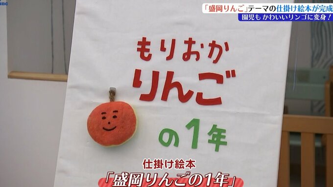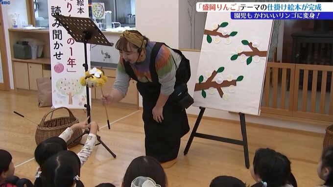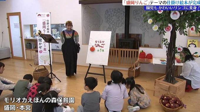 盛岡市で生産されるリンゴの生育過程をテーマにした手作りの絵本が完成しました。8日は完成を記念して市内の保育園で読み聞かせが行われ、園児たちが絵本を通して地元の食材に理解を深めていました。