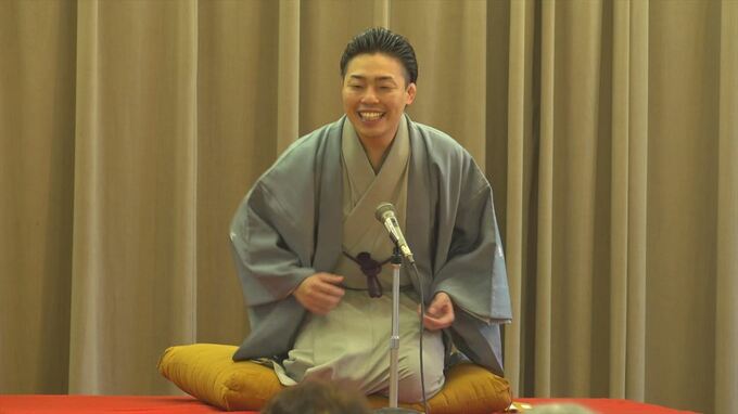 8日は韮崎市出身の落語家 春風亭弁橋さんが、市内に住む高齢者およそ40人を前に軽妙な語り口の落語を披露し、会場は笑いに包まれました。