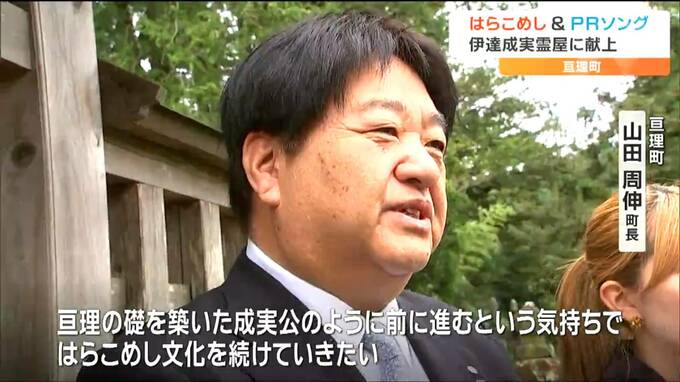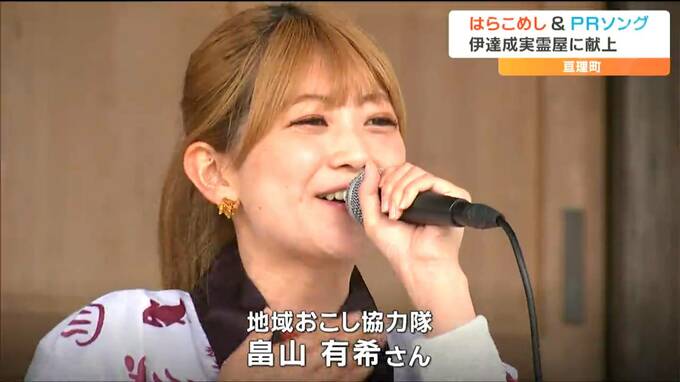続いて、地域おこし協力隊がはらこめしPRソングの歌詞カードを供えました。
