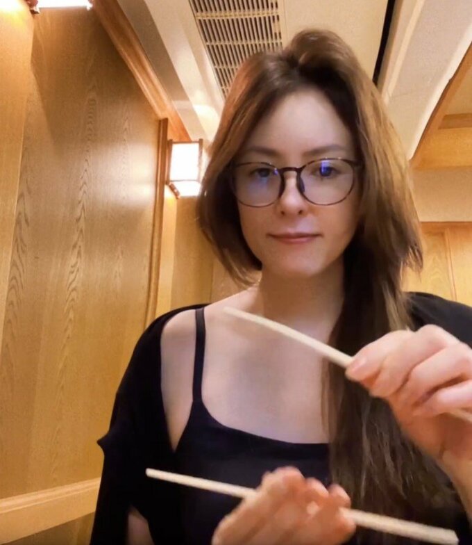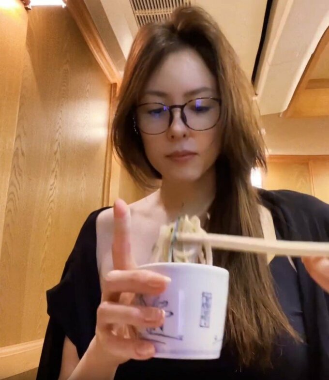 投稿された動画で、大河内さんは、お蕎麦を楽しむと、カメラに向かって親指を立てて笑顔を見せています。