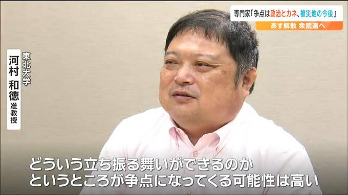 宮城県内では今回の衆院選から区割りが変わり小選挙区が6から5に減ります。河村准教授は区割り変更後も「県内5つの小選挙区全てが沿岸被災地を抱える」として国からの支援が減っていく「被災地の今後」のあり方が重視されると指摘します。