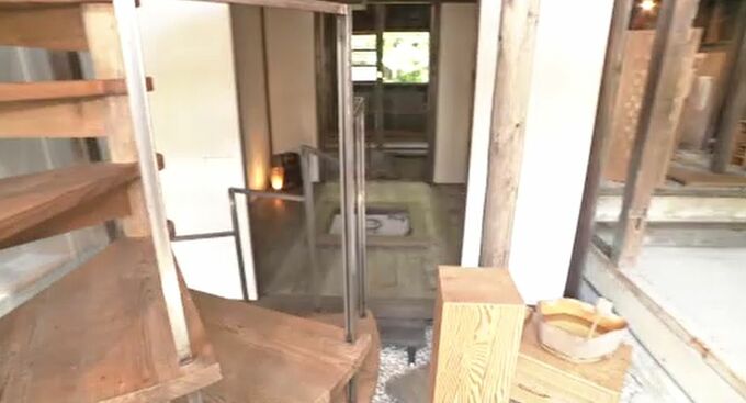 リポート「東山にやって来ました。こちら一見普通のアパートに見えますが中に入るとお風呂に、囲炉裏がありますね??」