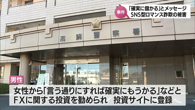 SNS型ロマンス詐欺の被害です。宮崎県児湯郡に住む60代男性が、SNSで知り合った人物から投資話を持ちかけられ、およそ1300万円をだまし取られました。警察によりますと、被害に遭った児湯郡の60代男性は、今年6月…