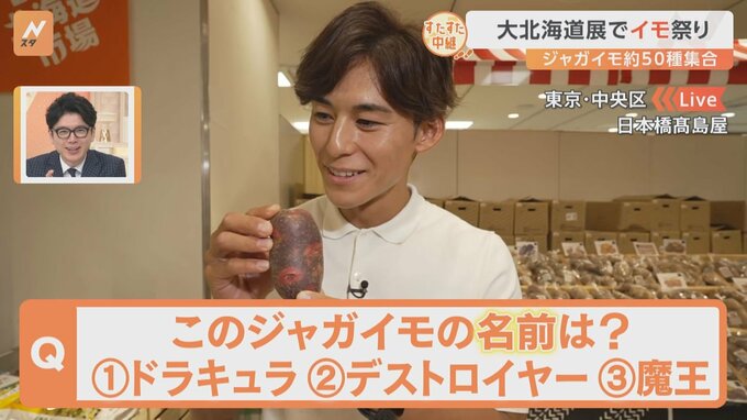 8日の「歩いて発見!すたすた中継」は、今が旬!ジャガイモとサツマイモをメインにした「大北海道展」から齋藤慎太郎アナウンサーがお伝えします。